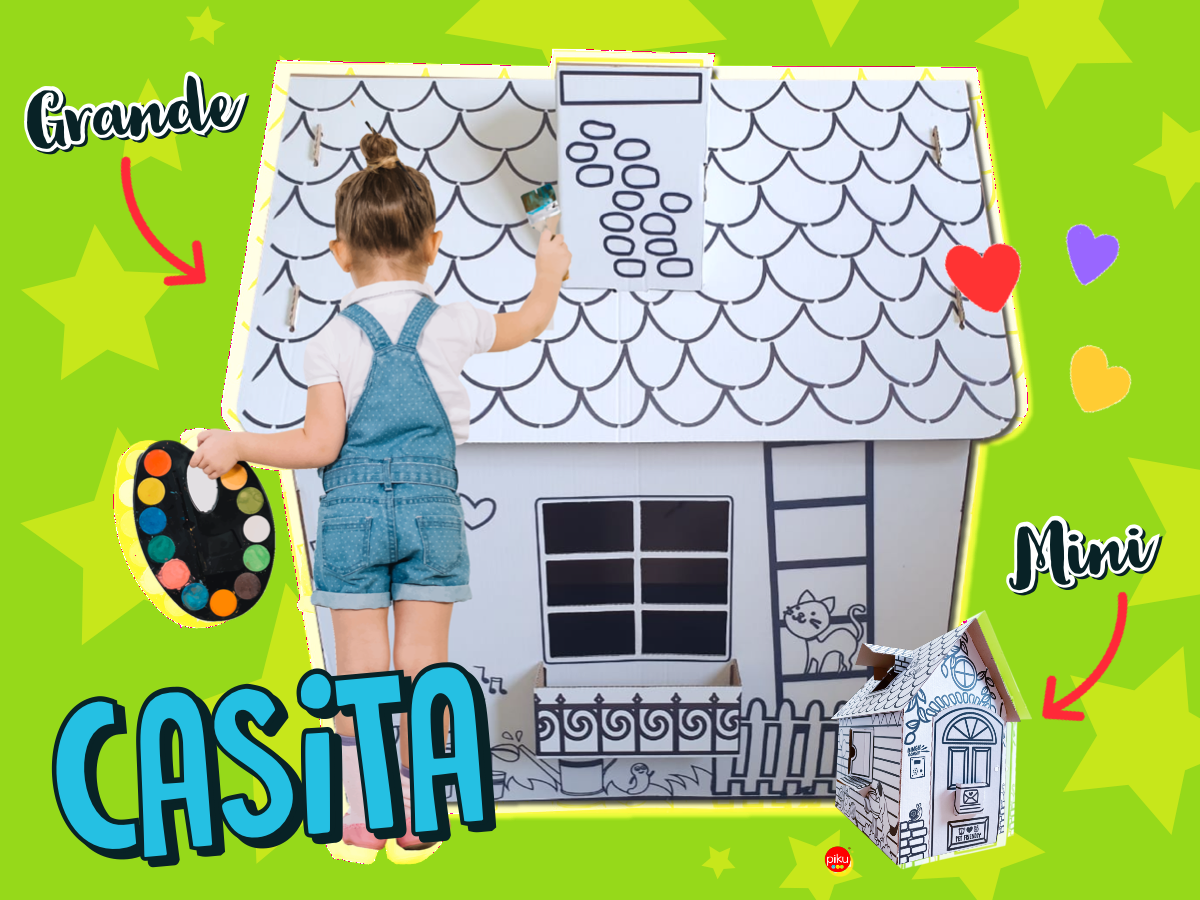 Casita de cartón versión mini. Una económica, ecológica, creativa y diferente opción para regalar algo diferente los niños. Esta pequeña versión de la Casita ha sido diseñada para armar con pegamento o cinta doble cara, y para pintar y decorar con todo tipo de materiales para manualidades. Mide: 33 cms de alto x 32 cms de largo y 24 cms de ancho