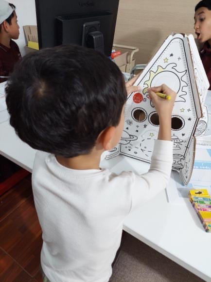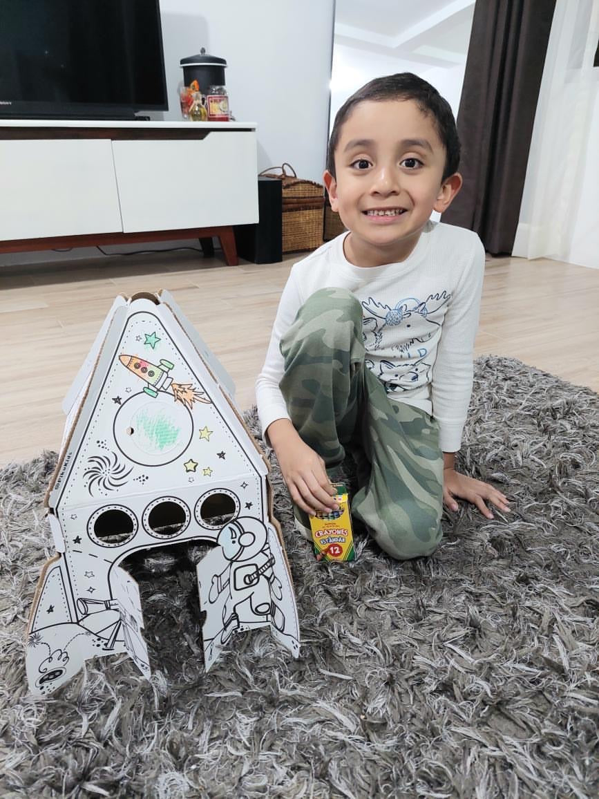 Cohete de cartón versión mini. Esta pequeña versión del Cohete ha sido diseñada para armar con pegamento o cinta doble cara, y para pintar y decorar con todo tipo de materiales para manualidades. Mide 30 cms de ancho x 38 cms de alto.